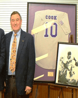 Cook and fellow baseball standout Jim Willis will have their NSU Baseball numbers retired. They will join two others as the only numbers retired in NSU baseball history. Their retired numbers will be displayed on the outfield wall at Brown-Stroud Field.