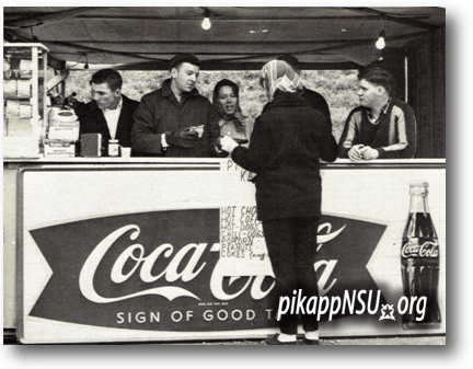 For the second straight year Beta Omicron has operated a concession booth during the annual Christmas Festival held in Natchitoches. Both years this has been a very successful venture for the chapter. Pi Kapp received a monopoly on selling peanuts, popcorn, and cotton candy, which added greatly to the success of the activities. This is not only a great help in the financial department of the chapter but also it gives the men another common goal for which to strive.