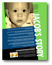 If you’d like to send your words and prayers of encouragement, e-mail Rachael at rachael.tingle@hotmail.com or Randy at pika650@aol.com . You can also print a full-size flyer to hang in your office or on campus to spread the word about Jacob’s story and craniosynostosis. Just click the image to the left or this link to download! Jacob, Rachael, and Randy are family.