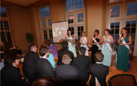 Each year the Beta Omicron Chapter selects the fraternity sweetheart, known as the Rose Queen. This honorary title is bestowed upon one woman who embodies class, character, and elegance. Julie Peeples was crowned the 2014 Beta Omicron Rose Queen. Others named to the court include: Alex Andre, Blake Lemoyne, Cady Hunt, and Kaila Wilhelmi. After Peeples was presented with a bouquet of red roses, the official flower of the Fraternity, all members and alumni performed the traditional serenade, “The Rose of Pi Kappa Phi,” on one knee.