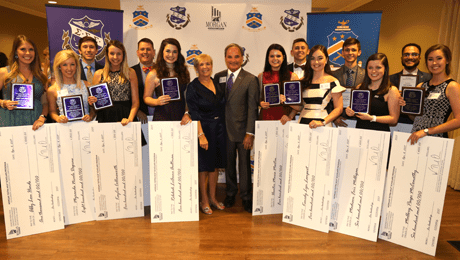 Pi Kappa Phi’s Beta Omicron Chapter and Sigma Sigma Sigma’s Alpha Zeta Chapter recognized 14 exceptional student members at the David D. Morgan and Sherry F. Morgan ‘Extra Mile’ Scholarship Banquet on Thursday, April 6, 2017.