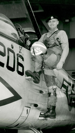 During his junior year in college, the navy recruiters were on campus. He recalled a poster displayed of a navy fighter flying at a high altitude with the caption, “Be an executive at 40,000 feet.”