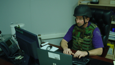 It was a place were I had an office, like any office, with soldiers testing their 50 cal. machine guns every few minutes as they went outside the wire, where helicopters flew over constantly at a height of 50 feet and jets took off and landed every few minutes. It was a place where over the duration of the war over 300 persons who worked for our company and its subcontractors died as a result of enemy activities. I’d been there about a month when the camp took incoming rockets or mortars or my first time. When I heard the klaxon I put on the helmet and vest that I had been issued and dropped to the floor as we had been taught. Then, when the first explosions were over, I made my way to the bunker. A crane operator had been unlucky enough to be in the wrong place at the wrong time during that episode and he never went home.