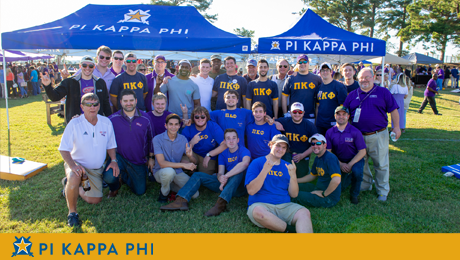The fun and fellowship continued at the Demon Commons, where families and generations of alumni convened at the Pi Kapp tailgating tents. Students, alumni, and their families and friends enjoyed corn hole and flag football before heading to Turpin Stadium to cheer on Pi Kappa Phi member Zachary Perry, a freshman offensive lineman, and his teammates. The Demons fought for an exciting 31-28 win against the Huskies of Houston Baptist University.