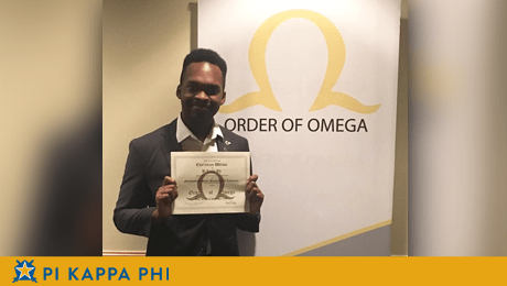 Char’Tarian Wilson, a member of Pi Kappa Phi Fraternity was inducted into NSU’s Greek honor society, the Order of Omega on November 7, 2018.