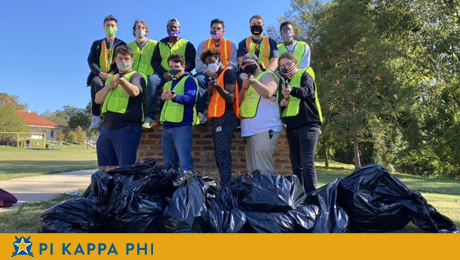 Members of the Beta Omicron Chapter of Pi Kappa Phi Fraternity at Northwestern State University spent the Halloween holiday walking neighborhoods, filling bags with trash, instead of candy.