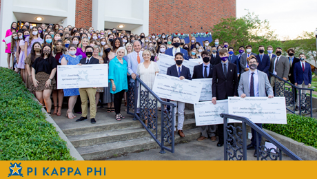 Northwestern State University students who are members of Pi Kappa Phi Fraternity Beta Omicron Chapter and Sigma Sigma Sigma Sorority Alpha Zeta Chapter were recognized as recipients of David D. Morgan and Sherry F. Morgan “Extra Mile” and First Generation scholarships during a socially-distanced assembly April 8.