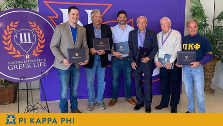 A dozen members of the Beta Omicron Chapter of Pi Kappa Phi Fraternity were recognized by Northwestern State University as part of its Greek Life Centennial celebration. Through its 100 for 100 program, NSU recognized 100 distinguished individuals for their notable contributions to fraternity and sorority life at the university over the last century.
