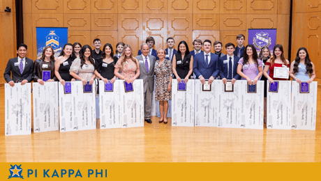 Several alumni participated in the program, including David and Sherry Morgan and keynote speaker Jack McCain Jr., a charter member of the Beta Omicron chapter and it’s first archon (president). Lindsay Maggio McElwee, a 2008 alumna, was emcee. Beka Burns, a 2019 alumna and chapter advisor, and Robert Broadwell, Pi Kappa Phi House Corporation Chairman, presented the honors. Speakers also included Tri Sigma President Zoe Johnson, Pi Kappa Phi President Travis Jimenez, Jake Henderson, CEO of Pi Kappa Phi Fraternity; NSU President Dr. Marcus Jones, Dr. Drake Owens, executive director of the NSU Foundation, James Lowring, Pi Kappa Phi chaplain, and Gabrielle Lacheney, Tri Sigma education director.