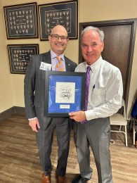Wes Breeden, 2003 NSU graduate and Pi Kappa Phi alumnus, emceed the program. Breeden serves on the NSU Foundation Board of Directors and the Pi Kappa Phi Foundation. During the program, Steve Esworthy, chief advancement officer for the national Pi Kappa Phi Foundation, recognized the Beta Omicron Alumni Chapter as a Champion Master Alumni Chapter, having regularly exceeding expectations in alumni volunteering, alumni engagement and support of the student chapter.