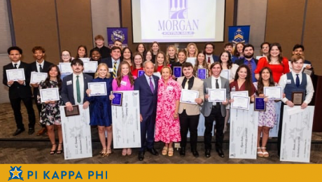 Madysen Morgan, Cailen Wiltcher and K.C. Thompson served as committee co-chairs for the program. Emcees were Pi Kappa Phi alumnus Wes Breeden and Sigma Sigma Sigma Camille Nunez. Virginia Dixon Monceret, Tri Sigma alumna, provided the keynote. Curt Herzog, chief development officer for Pi Kappa Phi Foundation, was an honored guest.